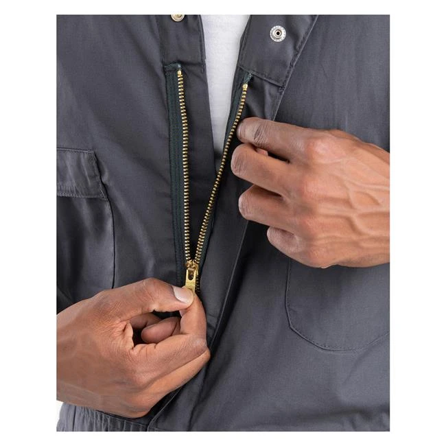 - Two-way brass front zipper with locking slider, safety-stitched seams and reinforced bartacks at all stress points keep up with the workday