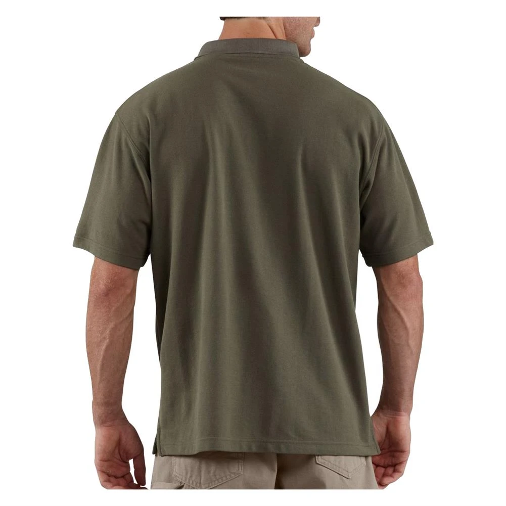 The Carhartt Contractor’s Work Polo is designed for those who work hard every day. Made with a blend of polyester and cotton pique knit, this shirt features a Contractor’s Work Pocket on the left chest with a special silo for holding small tools or writing utensils. The fabric uses innovative Stain Breaker technology to maintain a clean appearance by releasing stains. A no-roll polo collar and a traditional three-button front placket will have you looking sharp and professional on the jobsite. To deliver comfort and enhance performance, the open sleeves allow for a full range of motion and side vents on the square bottom improve air circulation to keep you cool. Complete with a tagless neck label to prevent skin irritation, this shirt keeps you comfortable and focused on the job.