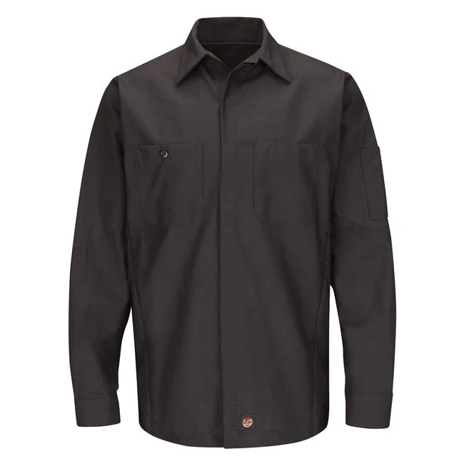 This long-sleeve, button-up shirt is styled for today’s automotive workers with a straight bottom hem that looks smart whether or not it’s tucked in. The durable ripstop fabric not only prevents tearing but wicks away sweat, keeping you cooler in steamy situations. Customize your shirt with color choice and stash important utensils in the front or sleeve pockets.
