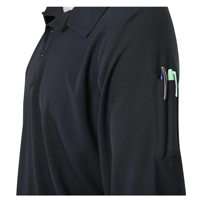 The Vertx coldblack Long Sleeve Polo allows you to stay cool while wearing dark colors in the sunlight. Exclusive coldblack technology combined with moisture-wicking fabric reflects 80% of the sun’s UV rays and lessens heat absorption — resulting in a light, breathable shirt perfect for warm weather missions. Streamlined design, convenient sleeve pockets for pens and pencils, and a no-roll collar provides a professional look along with all the functionality of a tactical polo shirt.