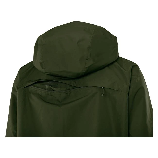 - Snap-on hood has fit adjusting draw strings and an integrated visor for head protection
